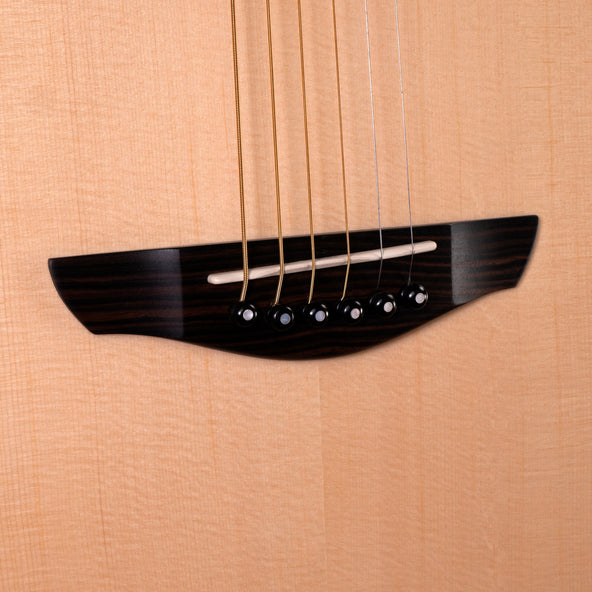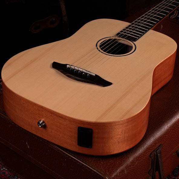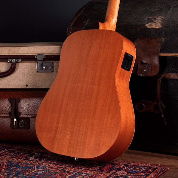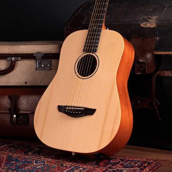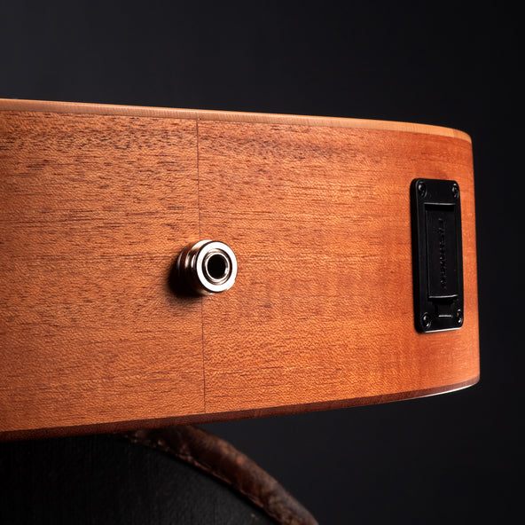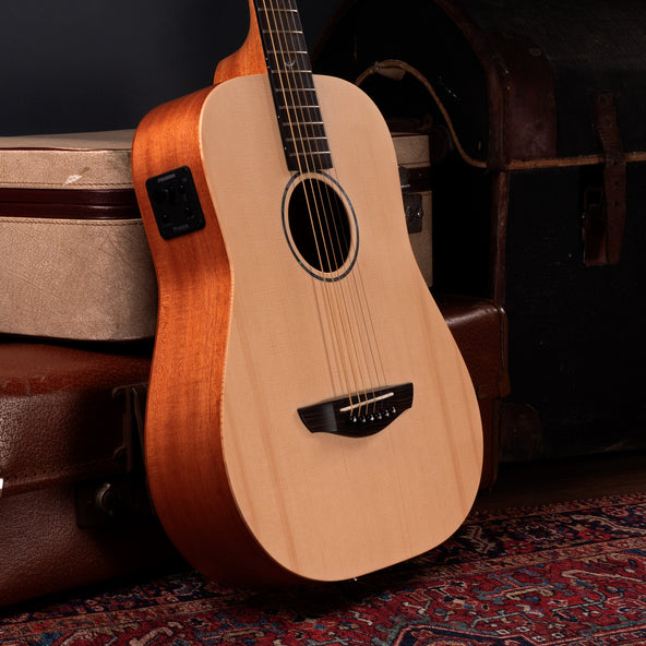 The Nomad Mini-Saturn features solid Spruce on the Top and solid Indonesian Mahogany on its back and sides, both shown in their natural hues. Each Nomad instrument comes with a satin finish, allowing the wood to freely resonate, embracing any musical battle scars and festival memories with a sense of pride.