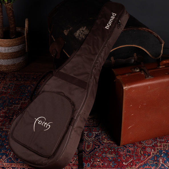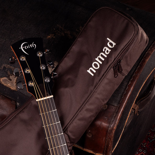 Your Faith Nomad guitar is supplied complete with a padded gigbag with handles, backstraps and an accessory pocket. It will even just about squeeze into most overhead lockers in airplanes too!
