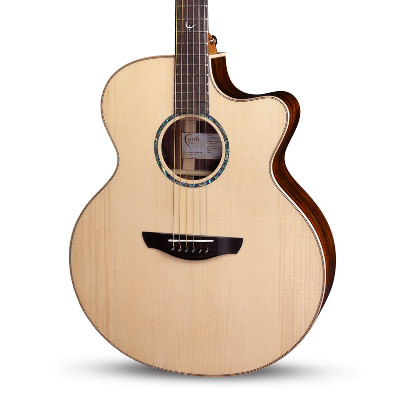 The Faith Jupiter model is a traditional 17" Jumbo guitar with a wide and deep body.